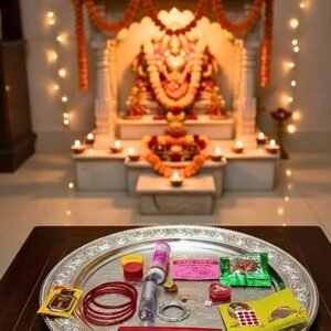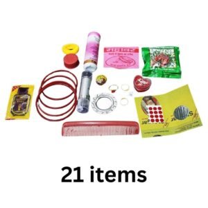 यह माता का 21 श्रृंगार किट एक प्लास्टिक बॉक्स में संपूर्ण रूप से सेट किया गया है। यह खूबसूरत किट विशेष रूप से देवीजी और महिलाओं के सोला श्रृंगार की छोटी जरूरतों को ध्यान में रखते हुए तैयार की गई है। इसमें सुहागन के लिए आवश्यक सभी वस्तुएँ शामिल हैं, इसलिए इसे सुहाग पित्रा, करवा चौथ और अन्य पारंपरिक अवसरों पर उपयोग किया जा सकता है।