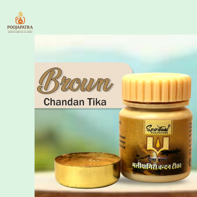 स्पिरिचुअल सॉल्यूशन्स ब्राउन चंदन टीका एक प्रीमियम क्वालिटी का चंदन पेस्ट है जो विशेष रूप से धार्मिक पूजा, मठ मंदिर, व्रत, संस्कार और दैनिक तिलक हेतु बनाया गया है। यह 100% हर्बल और स्किन फ्रेंडली है, जिससे त्वचा पर कोई जलन नहीं होती। इसमें मौजूद प्राकृतिक चंदन की गंध मन और वातावरण को शांत और पवित्र बनाती है।
