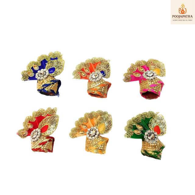 PoojaPatra लड्डू गोपाल पगड़ी-मुकुट ड्रेस सेट कॉम्बो 6 (साइज़ नंबर – 0) | बाल गोपाल कृष्ण भगवान वस्त्र