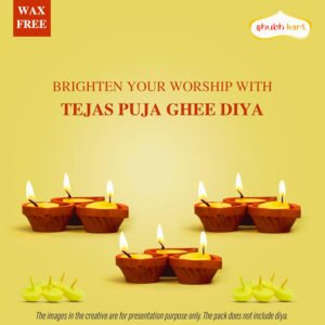 Shubhkart तेजस घी दीया बत्ती आपके पूजा-पाठ और धार्मिक कार्यों को सरल और शुद्ध बनाने के लिए विशेष रूप से तैयार किया गया है। यह पैक 30 रेडीमेड दीयों के साथ आता है, जो घी में डूबे हुए विक्स (वाती) होते हैं – जिन्हें अलग से घी डालने की जरूरत नहीं होती।