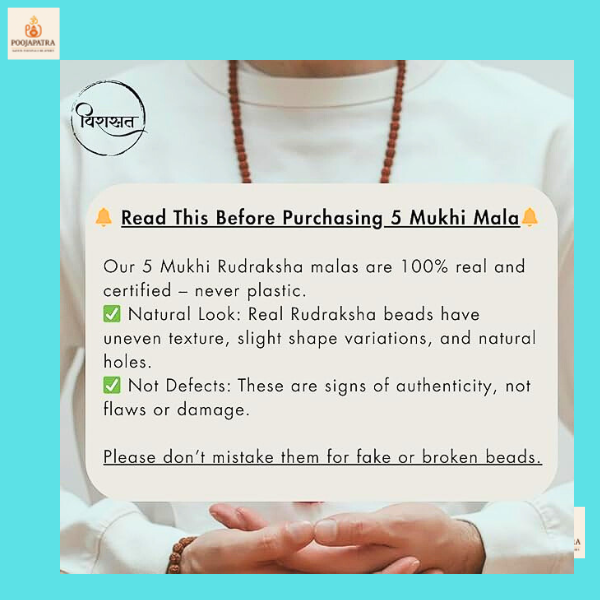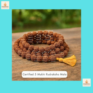 • प्रमाणित 5 मुखी रुद्राक्ष माला (108+1 मोती) – प्राकृतिक, ऊर्जावान और आध्यात्मिक रूप से शक्तिशाली।